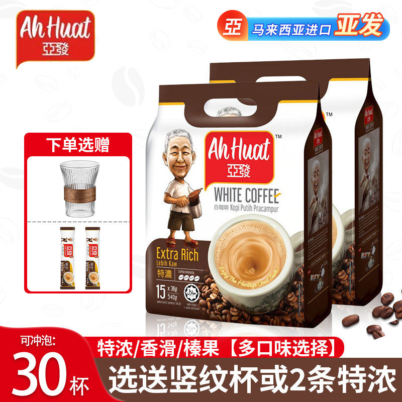 进口亚发马来西亚白咖啡特浓三合一经典速溶咖啡粉15条*2袋装正品