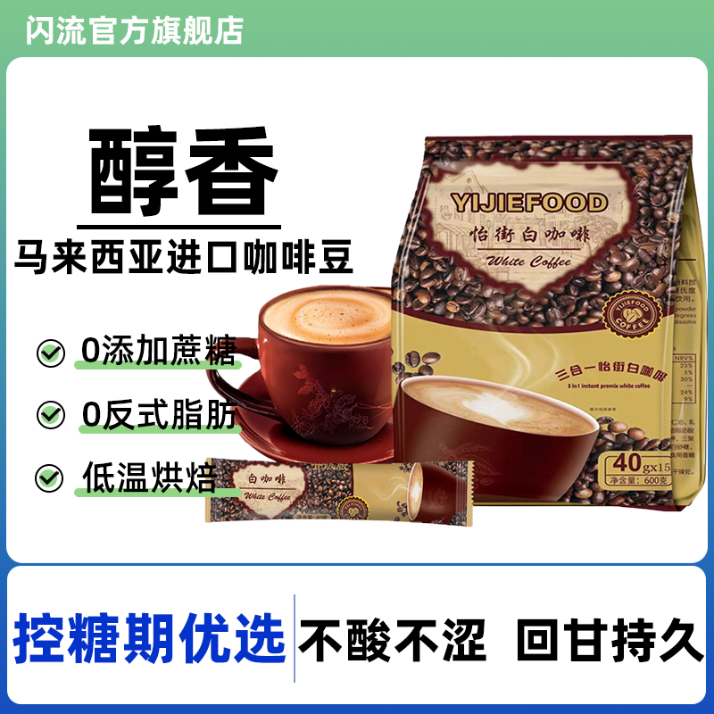 马来西亚白咖啡二合一速溶咖啡粉怡街经典冷萃原味无蔗糖15条袋装