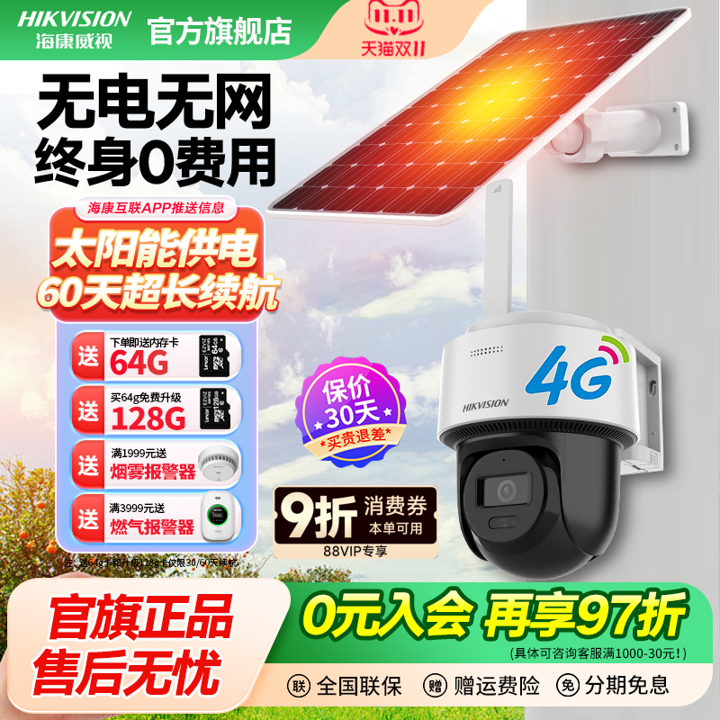 海康威视太阳能摄像头4g监控器360度无死角室户外免插电无需网络
