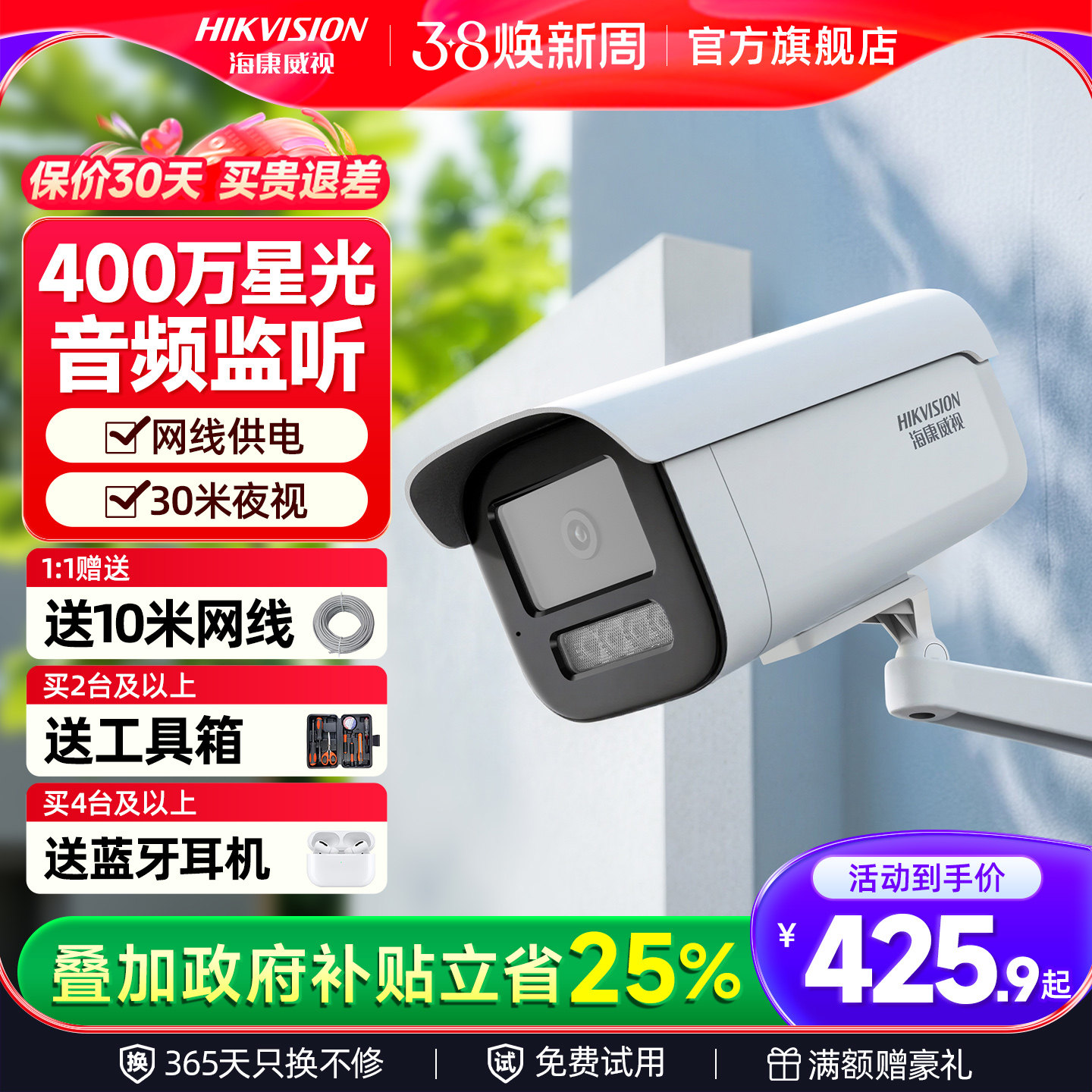 海康威视400万全彩网络摄像头户室外高清夜视可连手机远程监控器