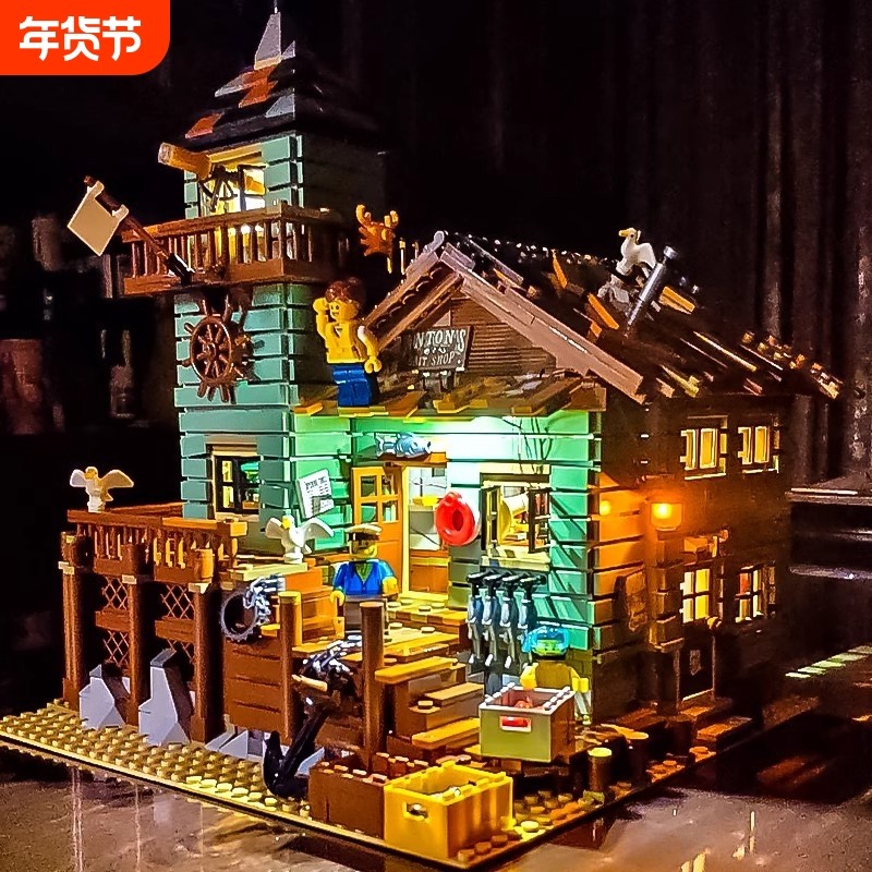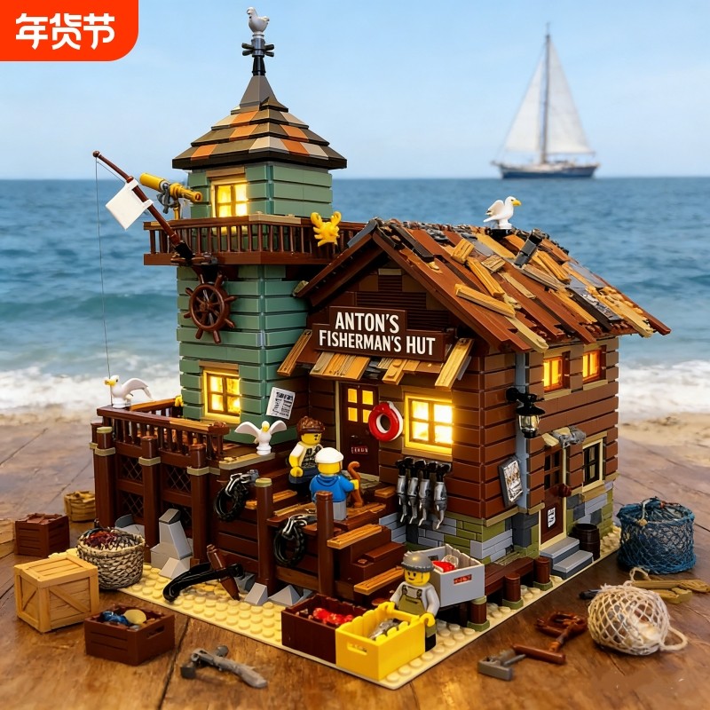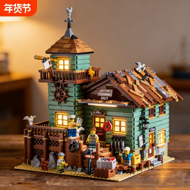 兼容乐高渔夫小屋积木建筑街景房子模型高难度男女孩拼装玩具礼物