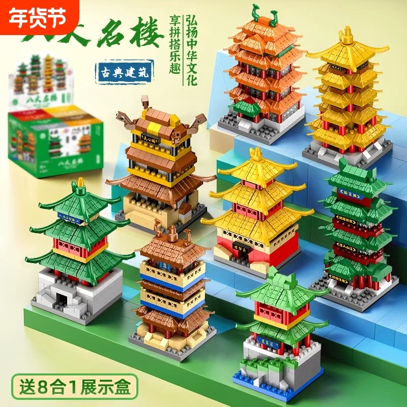 兼容乐高国风街景积木古建筑八大名楼黄鹤楼滕王阁岳阳楼儿童玩具