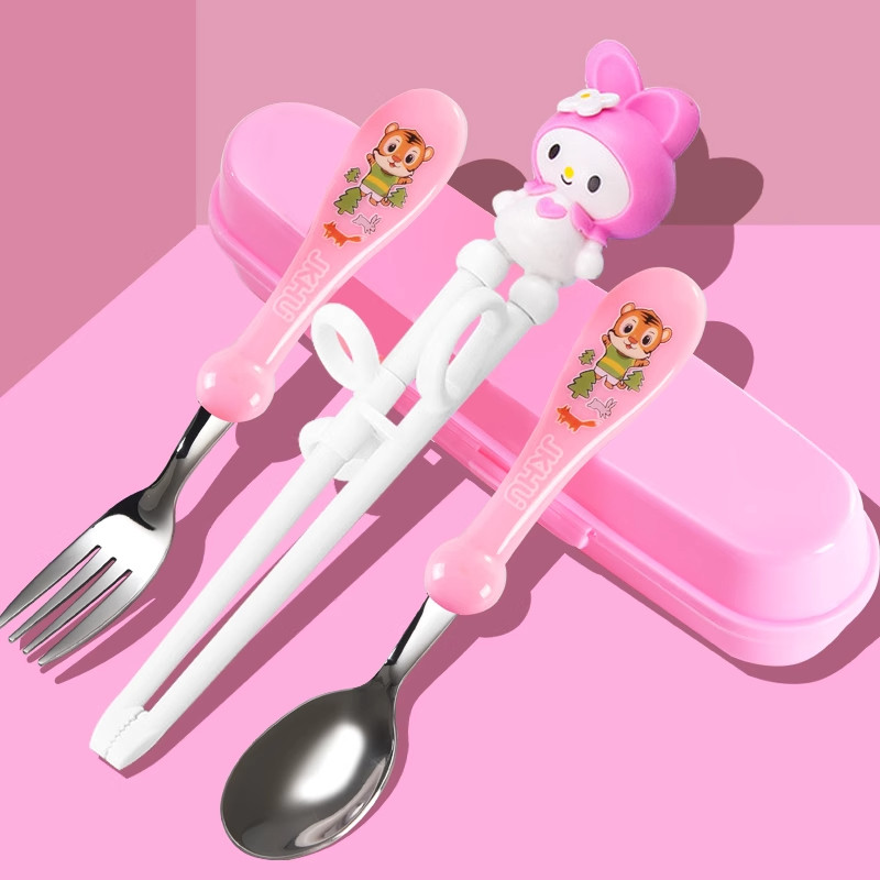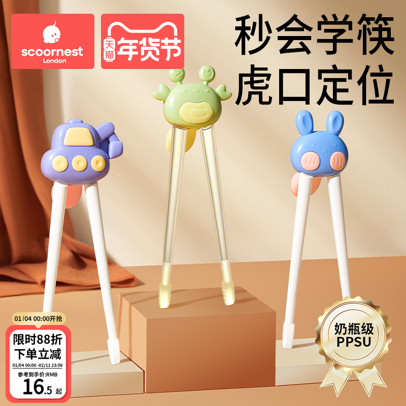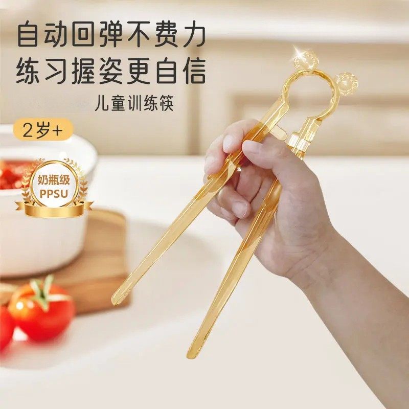 儿童ppsu虎口训练筷学习筷餐具回弹防滑婴儿宝宝1-3-6岁辅助器