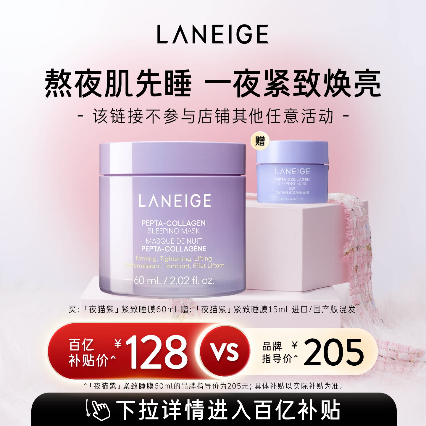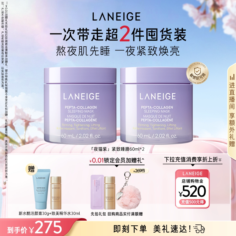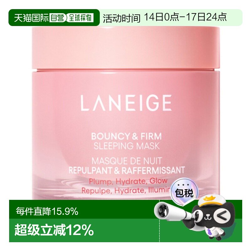 韩国直邮LANEIGE兰芝胶原弹滑睡眠面膜60ml保湿提亮礼物正品果酸