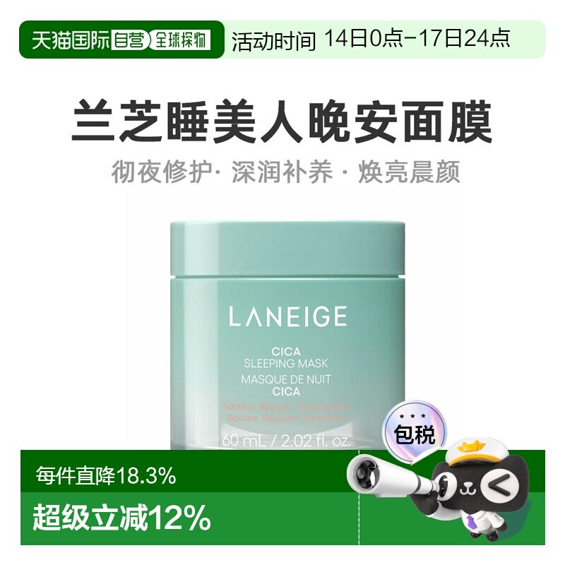 琪琪海淘免税店 兰芝睡眠面膜中样15ml补水保湿滋润修护免洗