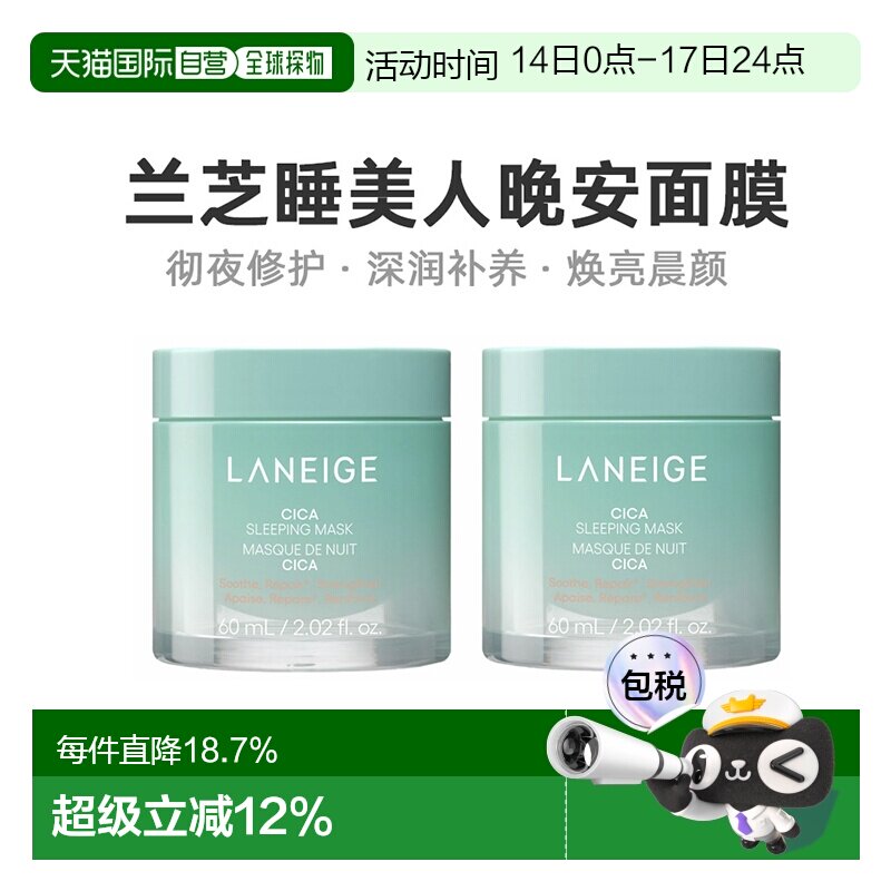 韩国直邮LANEIGE兰芝夜间舒缓修护睡眠面膜免洗60ml2件套装正品