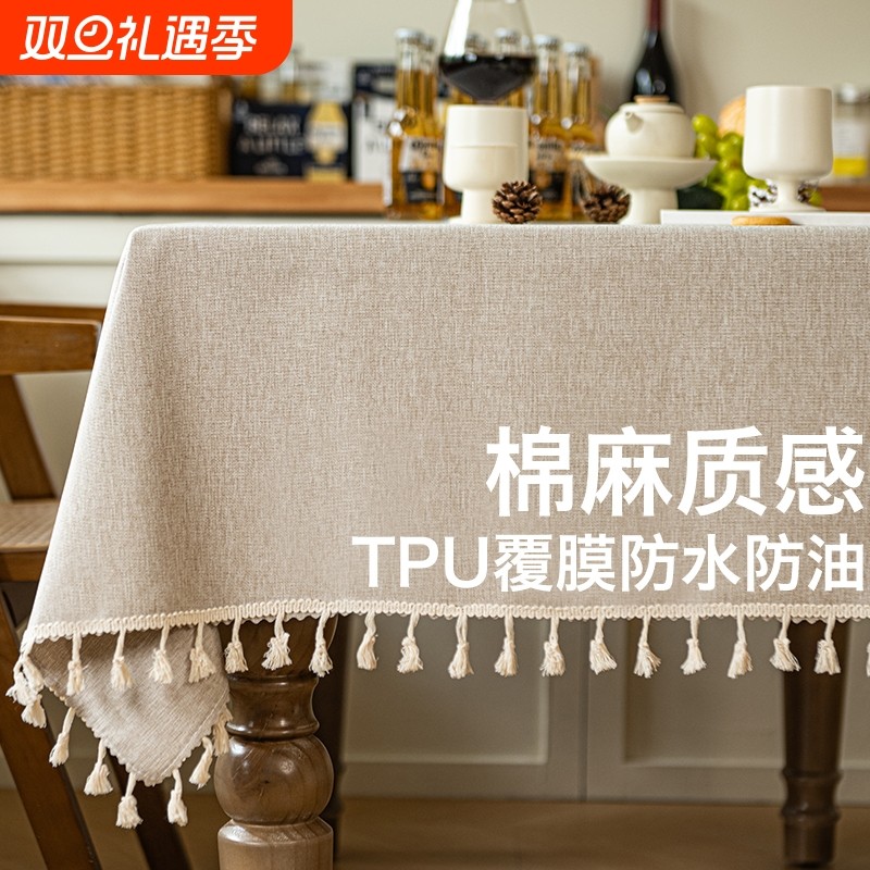 防油桌布棉麻布艺餐桌高级感防水纯色免洗长方形轻奢书桌茶几2025
