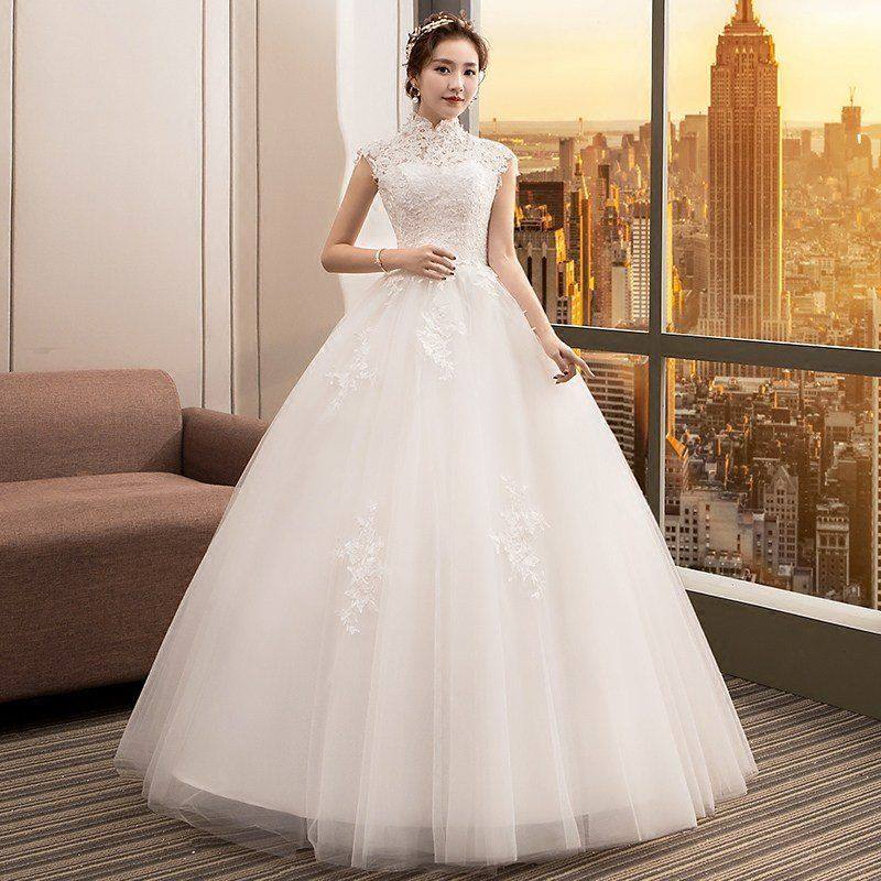 婚纱礼服2025新款新娘立领一字肩齐地显瘦秋冬简约公主森系轻婚纱