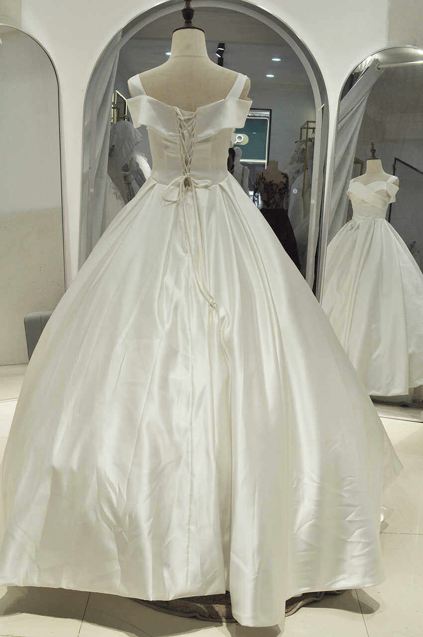 苏州婚纱一条街婚纱礼服2025新款一字肩蕾丝齐地婚纱影楼精品白纱