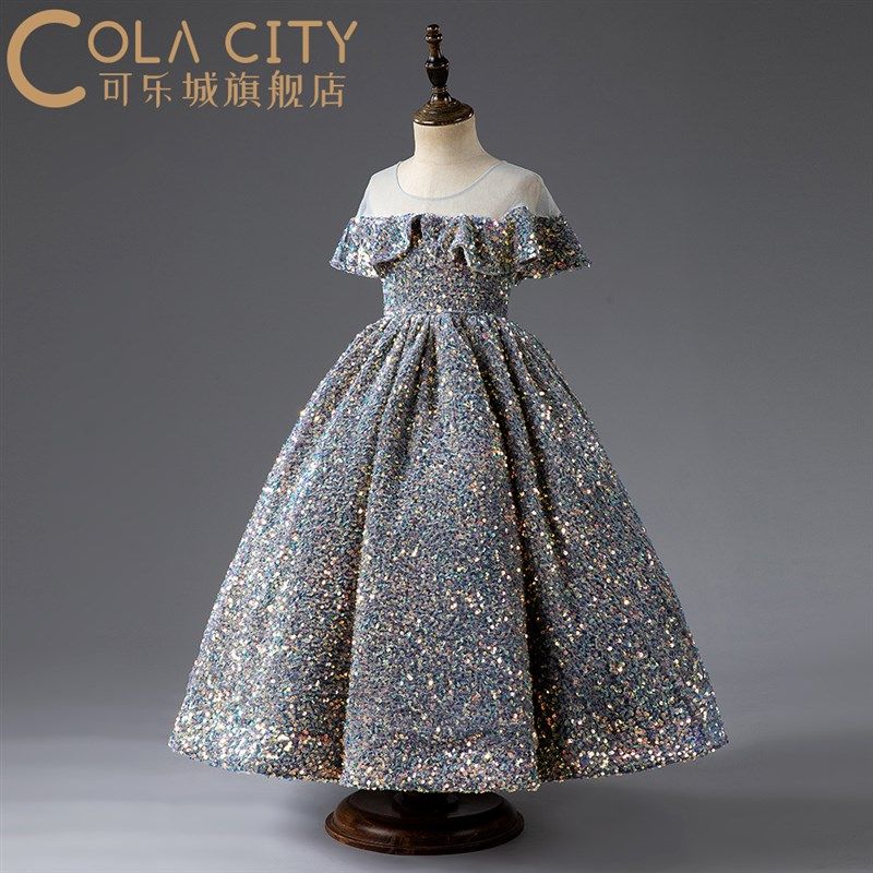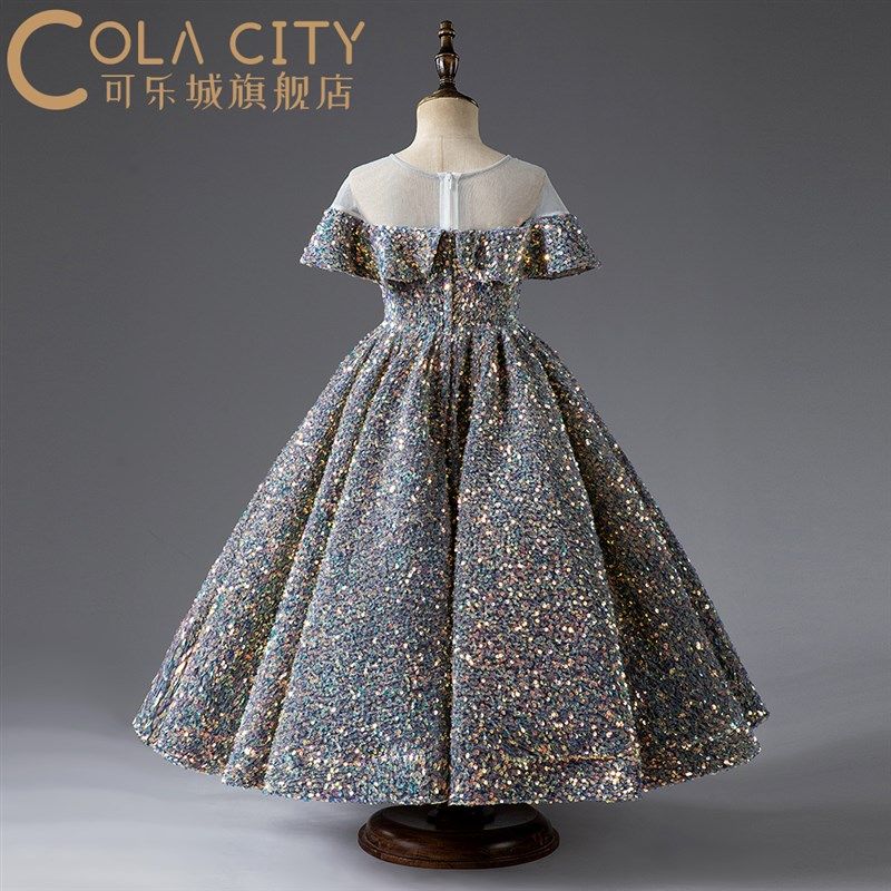 女童礼服亮片婚纱秋冬公主裙齐地钢琴演出服生日走秀晚礼服一字肩