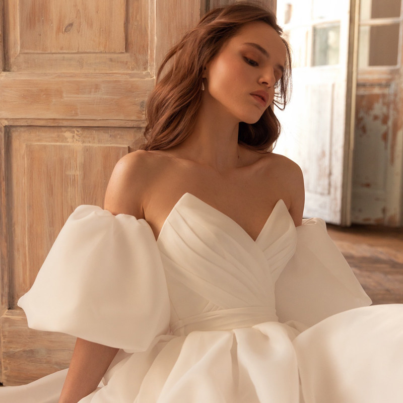 法式公主一字肩蓬蓬裙简约显瘦森系新娘结婚草坪婚纱齐地旅拍超仙