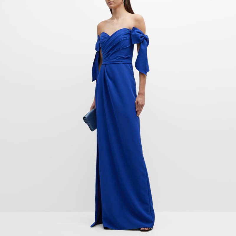 一字肩晚礼服齐地长裙小众气质2024新款主持人年会晚宴连衣裙时尚