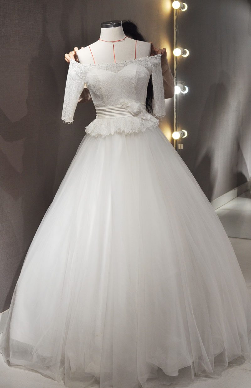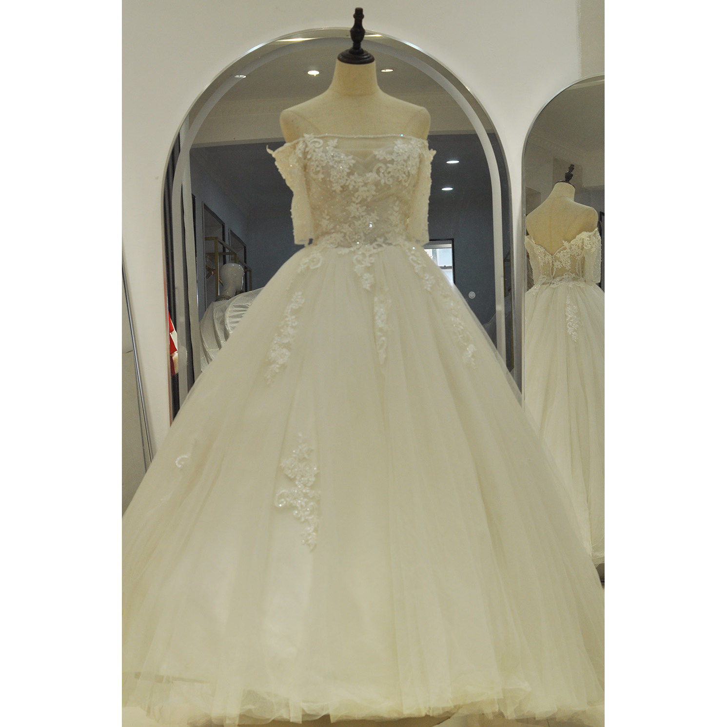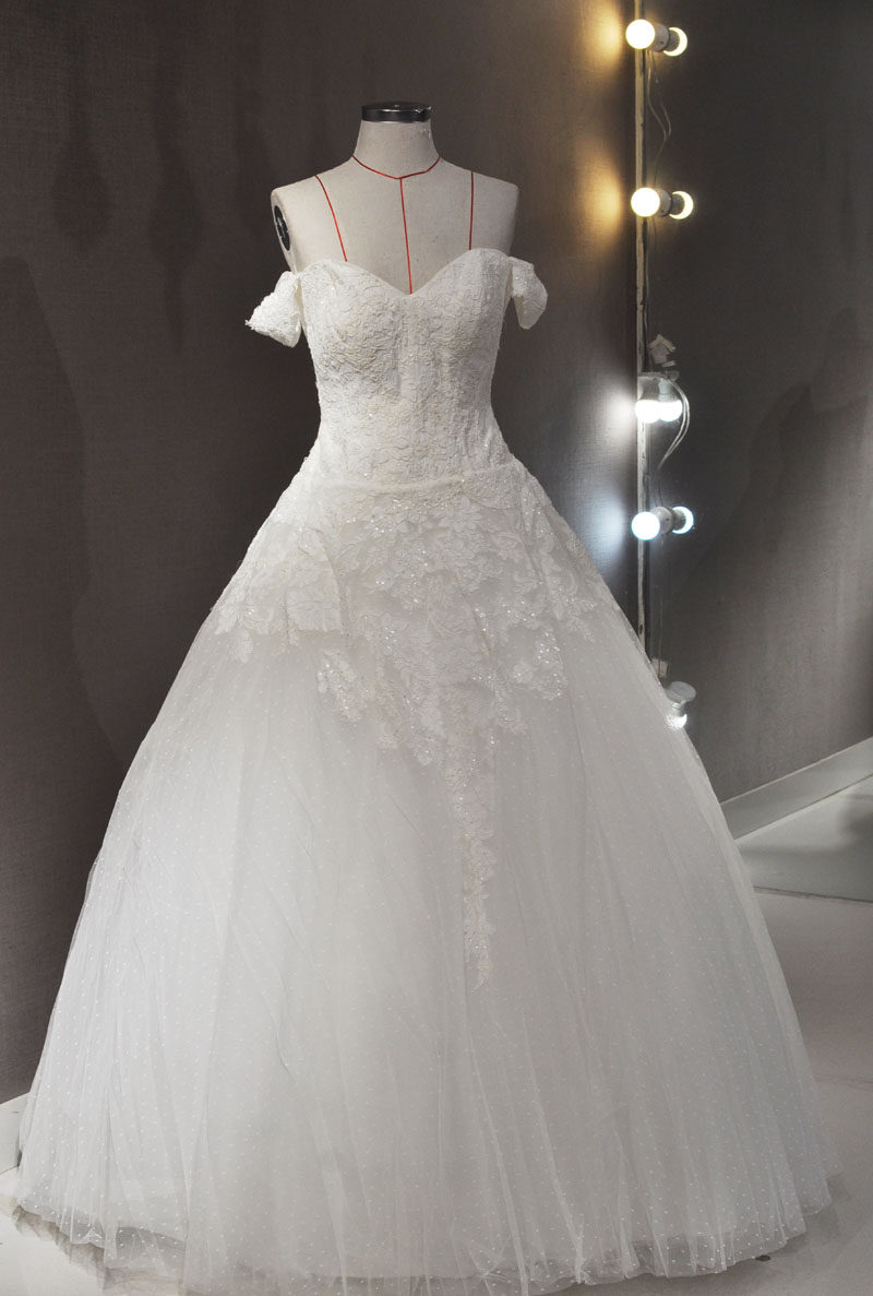 全新处理齐地婚纱 一字肩搭搭袖 超显瘦超精致进口蕾丝 广州正品