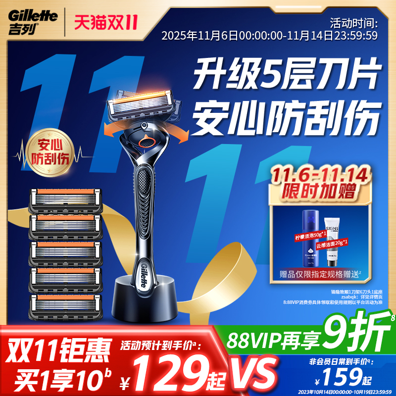 吉列锋隐致顺刀片手动剃须刀五层刀头刮胡刀架男士锋速5刀片刀头