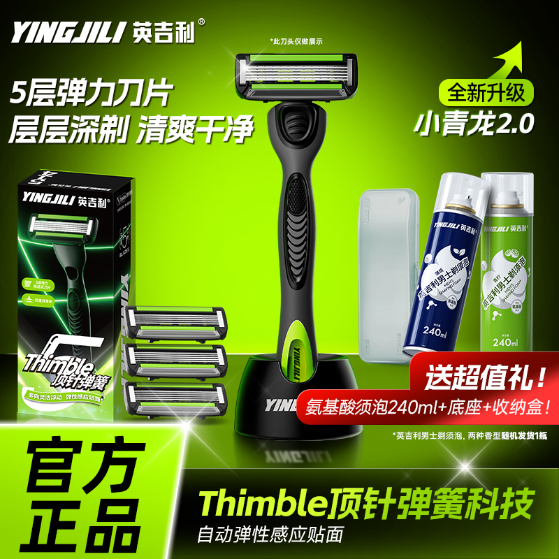 英吉利小青龙剃须刀手动刮胡刀男士非吉利五层刀头泡沫胡须膏套装