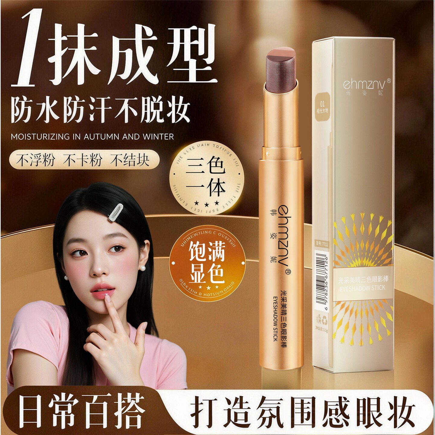 三色眼影棒一抹成型日常淡妆亮晶晶大地色哑光新手初学者2026新款