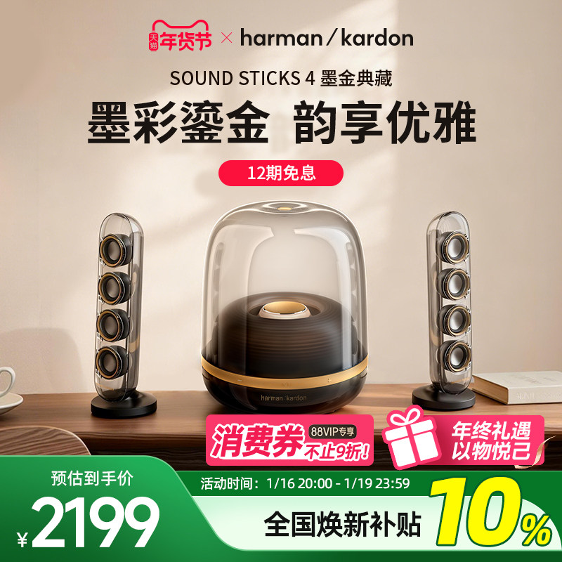 【全国补贴10%】哈曼卡顿水晶4墨金音乐蓝牙音箱家用礼物电脑音响