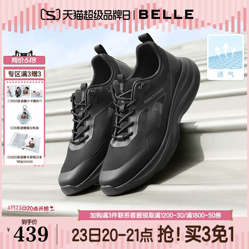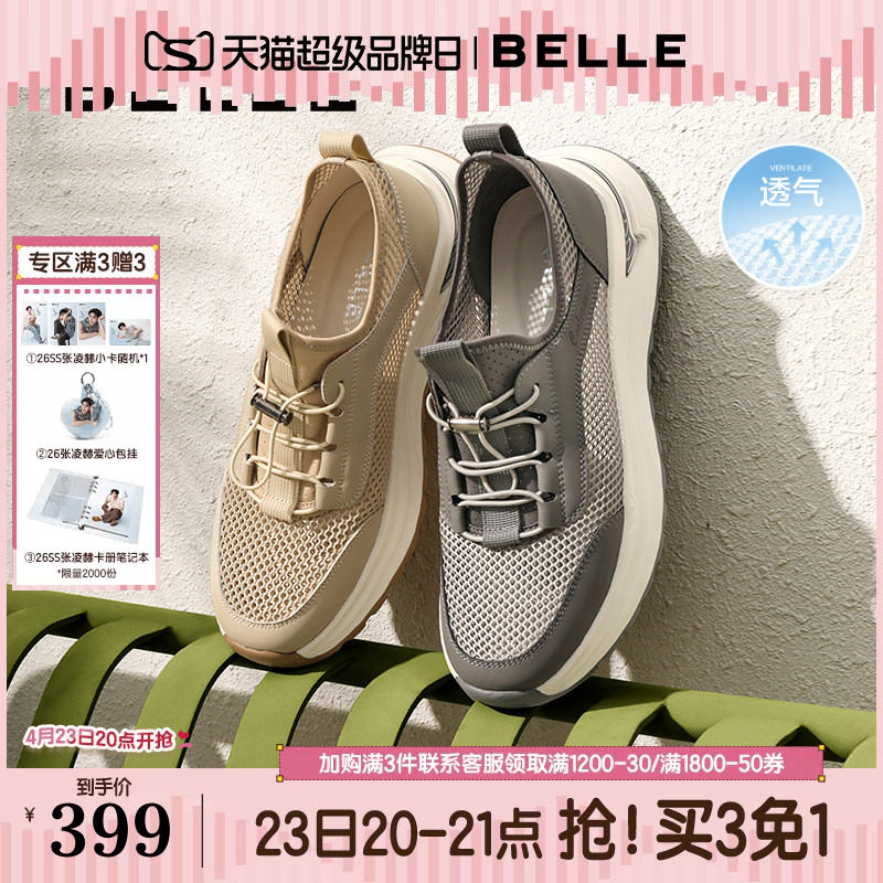 百丽男鞋网面透气轻盈增高健步鞋26夏季新男士款休闲运动鞋L1044B