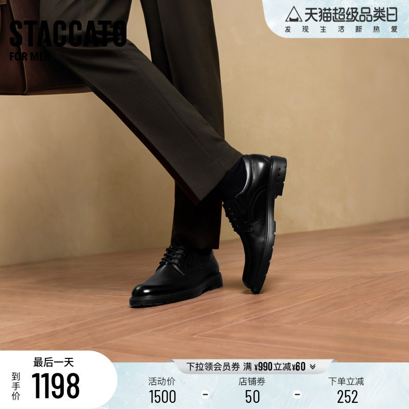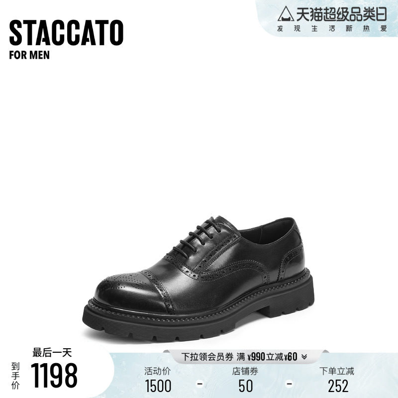 思加图2026新款黑伯爵正装皮鞋牛津鞋商务厚底增高鞋男鞋B8506AM6