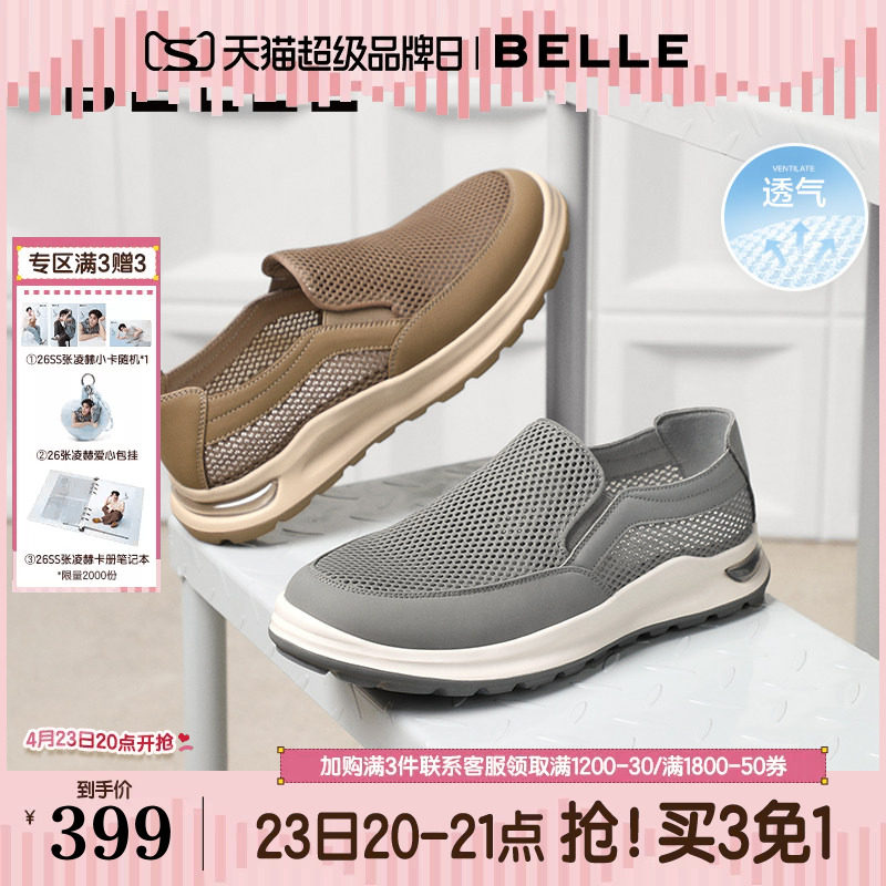 百丽男鞋网面透气一脚蹬26夏季休闲健步男款轻便布鞋爸爸鞋A1632B