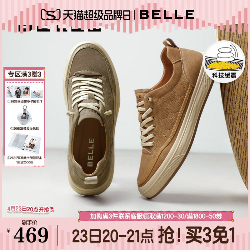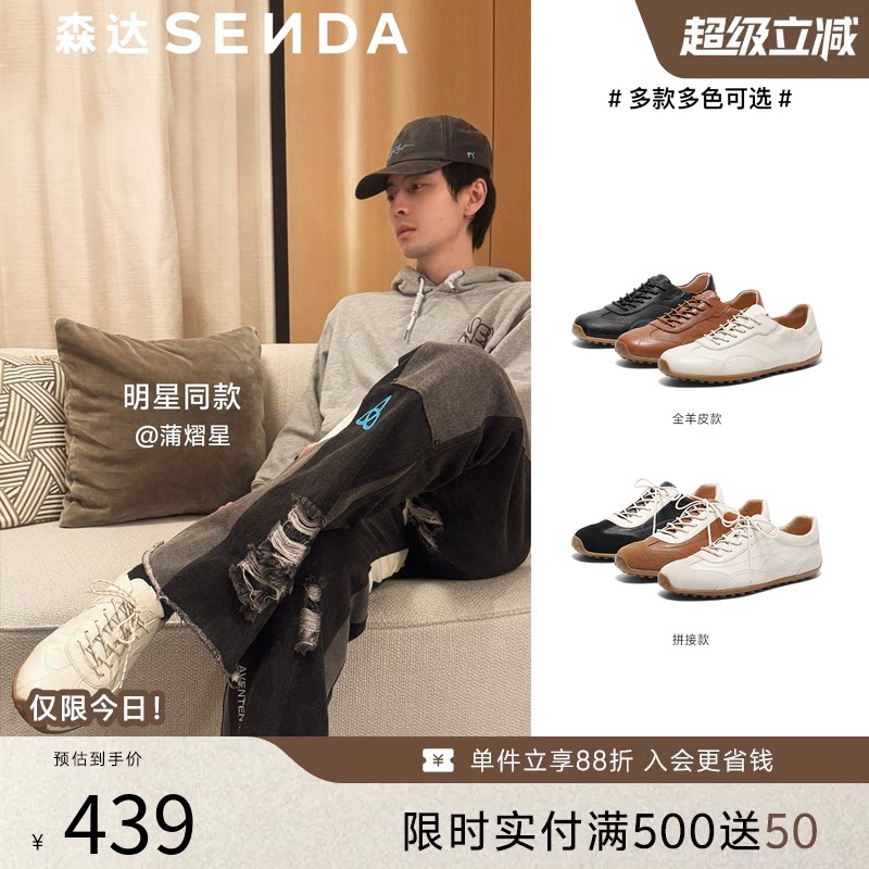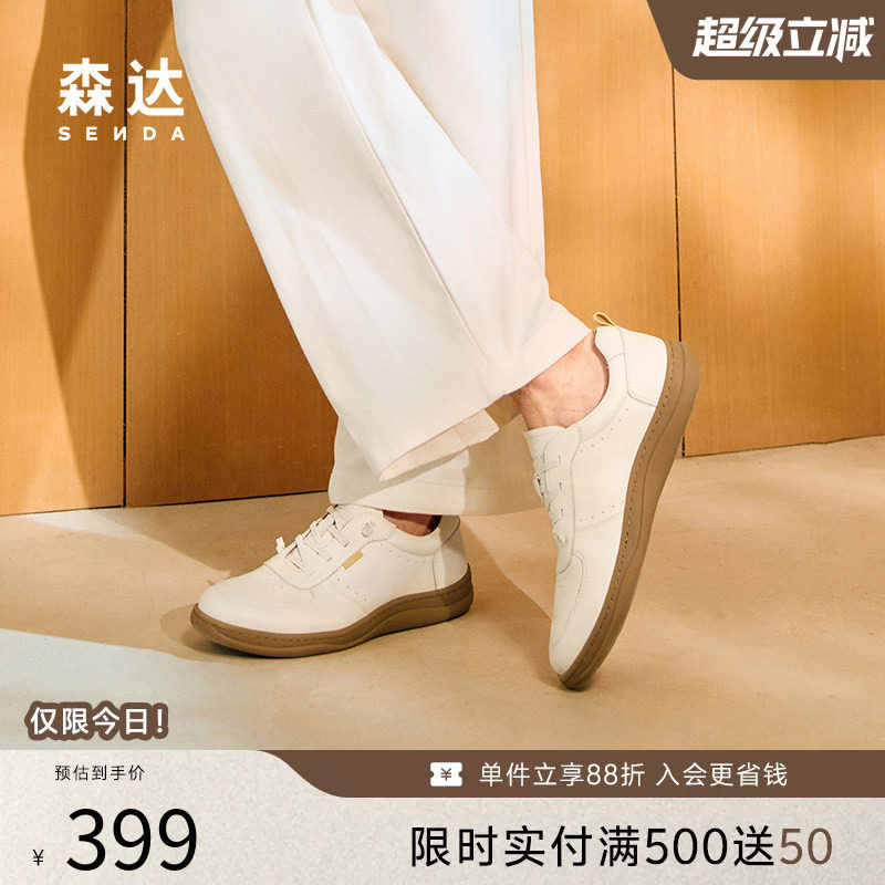 蒲熠星明星同款森达奶皮德训鞋男2026夏新商场休闲羊皮板鞋4XVB3B