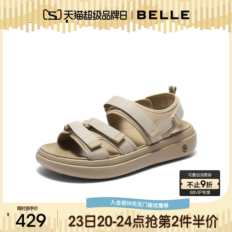 百丽男士透气休闲沙滩凉鞋男26夏季新款轻盈厚底增高魔术贴A2339B