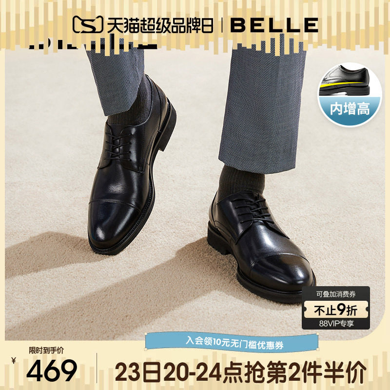 百丽男士春夏季透气休闲商务正装皮鞋三接头厚底内增高婚鞋B3229A