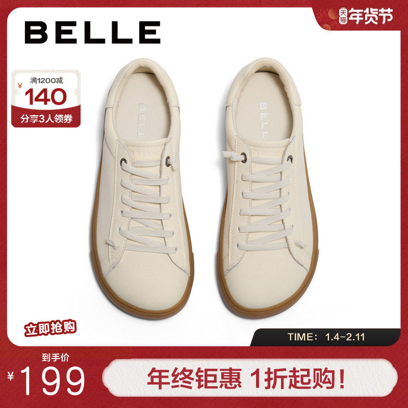 百丽女鞋子平底休闲鞋秋季新款运动鞋厚底板鞋软底小白鞋B4T1DCM4