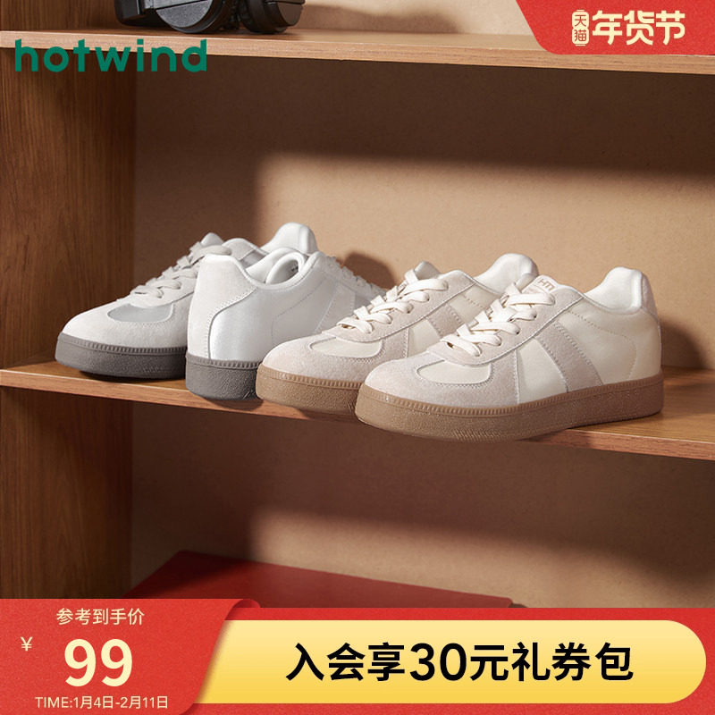 热风平底德训鞋女鞋2026年春季新款复古休闲板鞋薄底运动户外鞋子