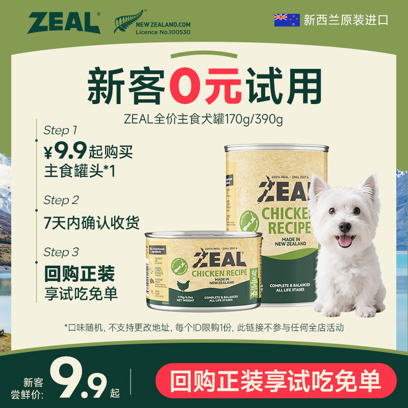 【百补犬罐】zeal狗主食罐新西兰进口狗粮湿粮狗罐头170g/390g*1
