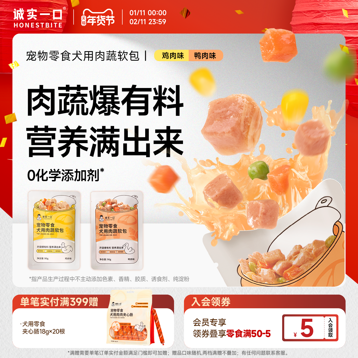 【新品】诚实一口犬用肉蔬软包拌饭狗湿粮营养餐包鸡鸭肉狗饭零食