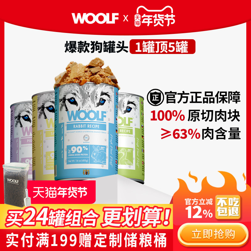 【官方正品】WOOLF伍尔夫狗狗零食罐头400g狗湿粮犬零食拌饭主食