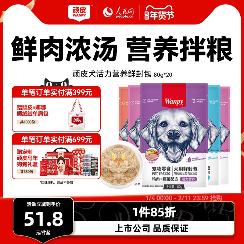 wanpy顽皮狗零食鲜封包狗狗罐头犬成幼犬狗粮伴侣泰迪狗湿粮拌饭