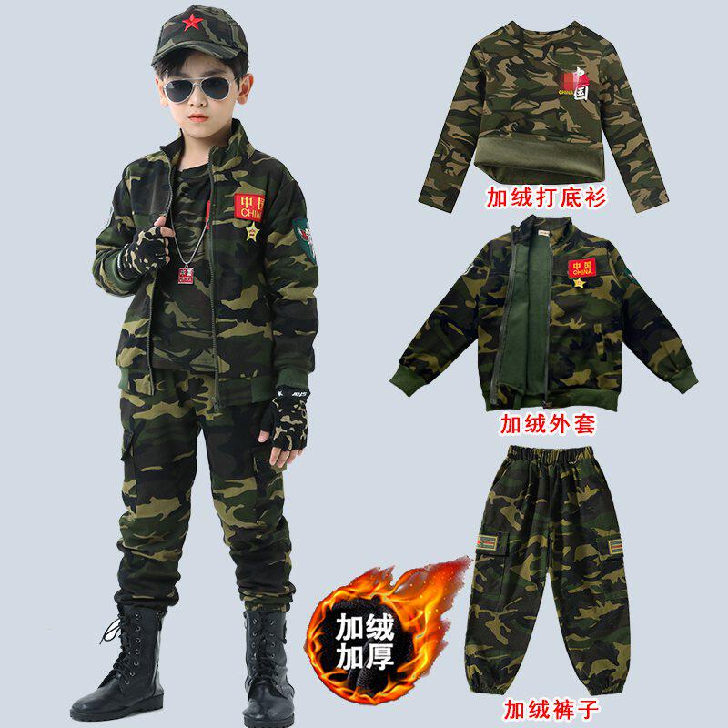 儿童迷彩服男女童特种兵秋冬款加绒套装军训服幼儿园军装演出服装