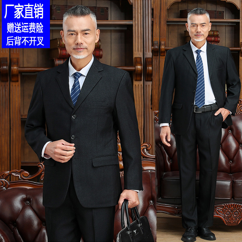 中年爸爸西服套装男士二件套宽松西装职业正装中老年服装结婚礼服