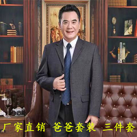 婚礼结婚爸爸西装套装三件套中老年人男士中年商务西服春秋款外套