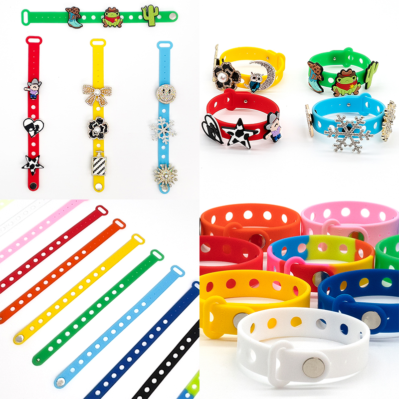 可调节硅胶手环运动洞洞手腕带21cm成人儿童用团建分组适配咔嗒扣
