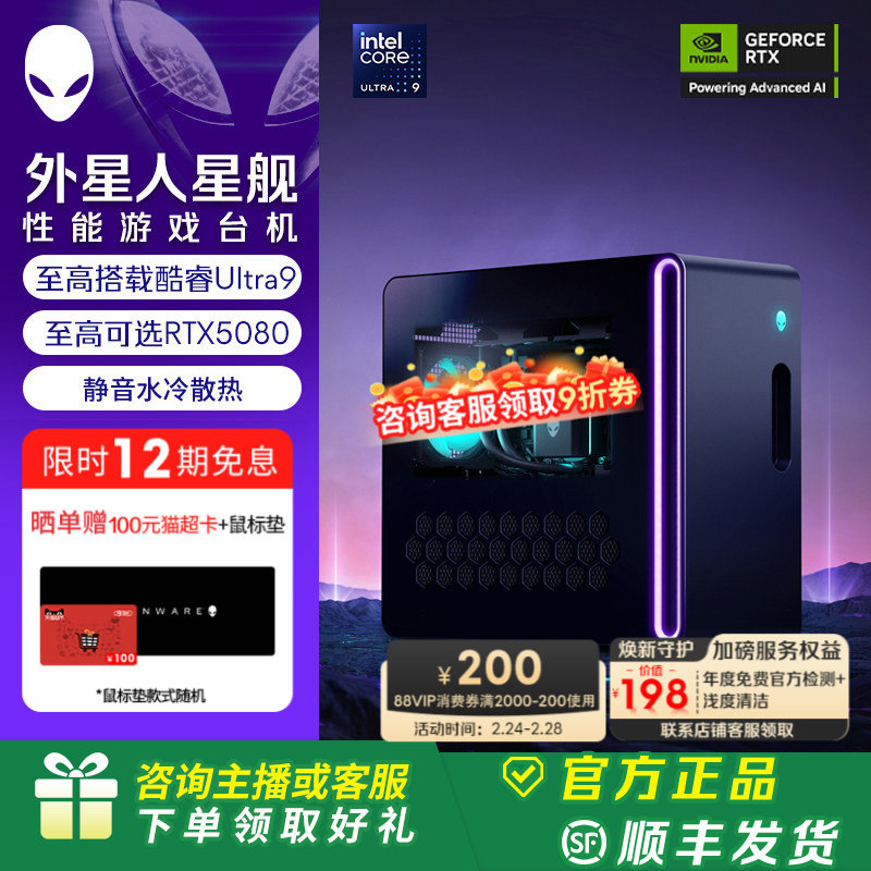 [百亿补贴]外星人(Alienware)【旗舰水冷】星舰 R17 游戏高端电脑主机 至高可选 Ultra9 32G 1T RTX5080