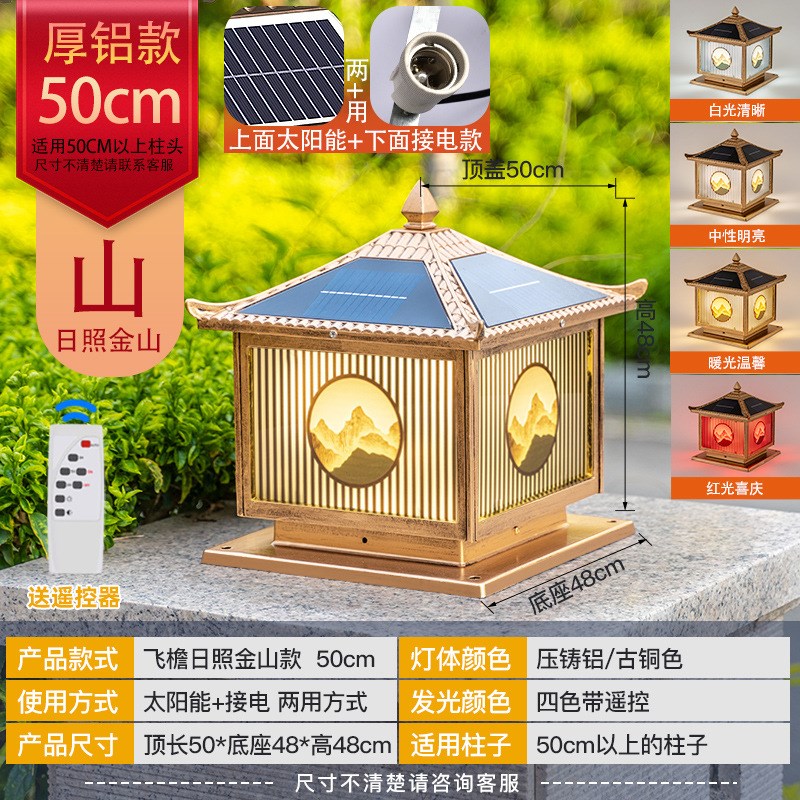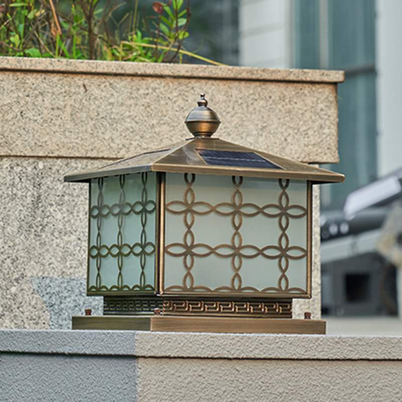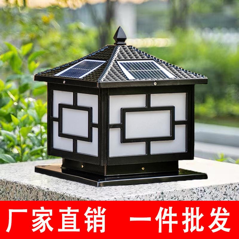 新中式太阳能柱头灯 户外方形防水门柱灯 复古别墅门口围墙庭院灯