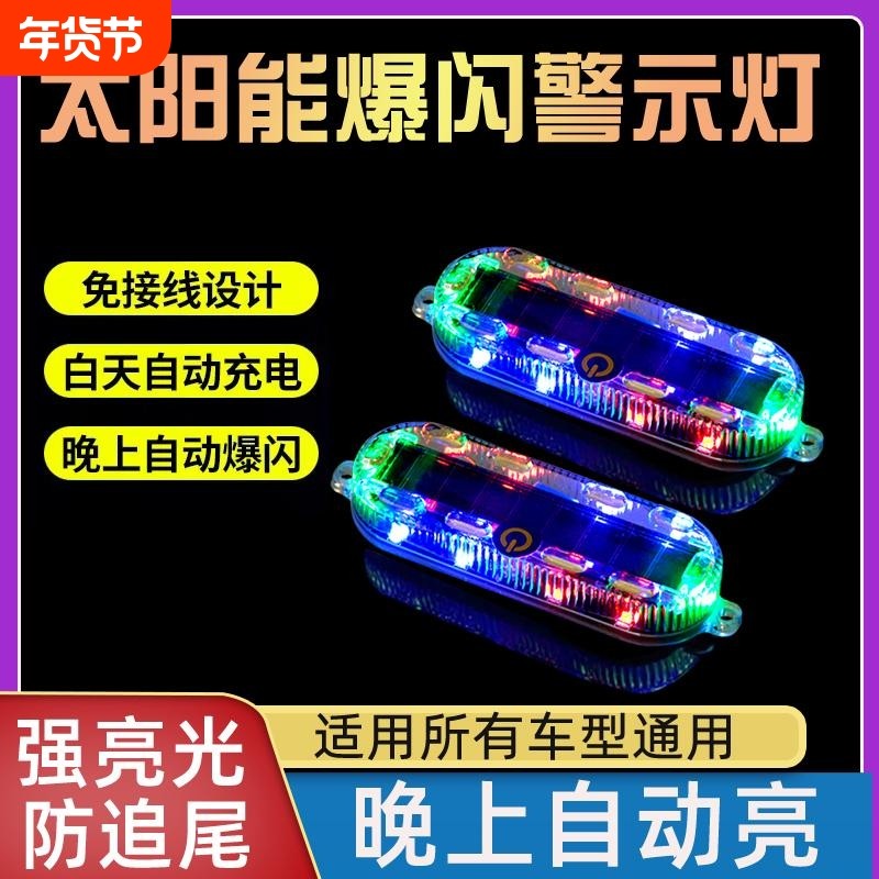 太阳能爆闪警示灯汽车免接线炫彩闪光灯电动车摩托车防追尾呼吸灯