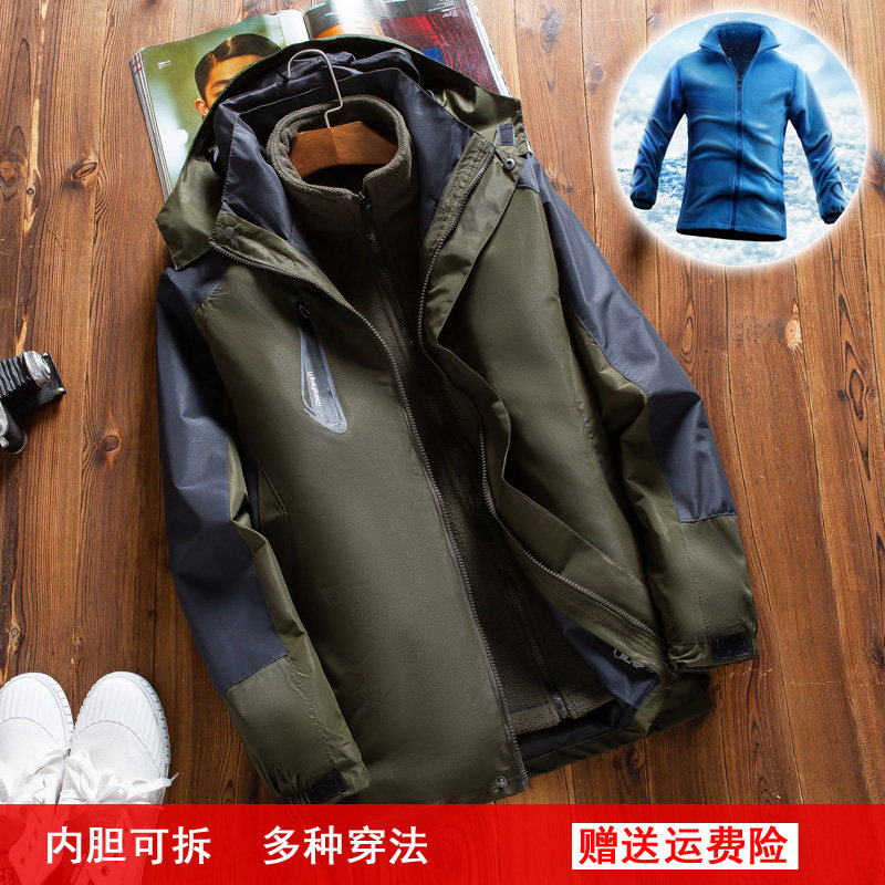 秋冬户外冲锋衣男三合一可拆卸防水夹克美式工装冬季加绒加厚外套