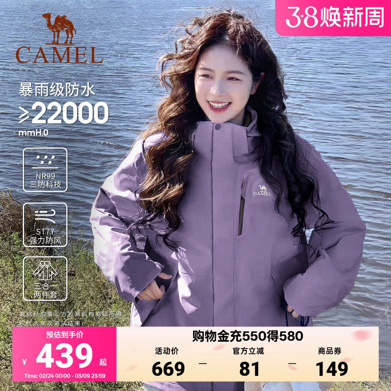 骆驼冲锋衣女秋冬2026新款三合一防风防水保暖户外雨神登山服外套