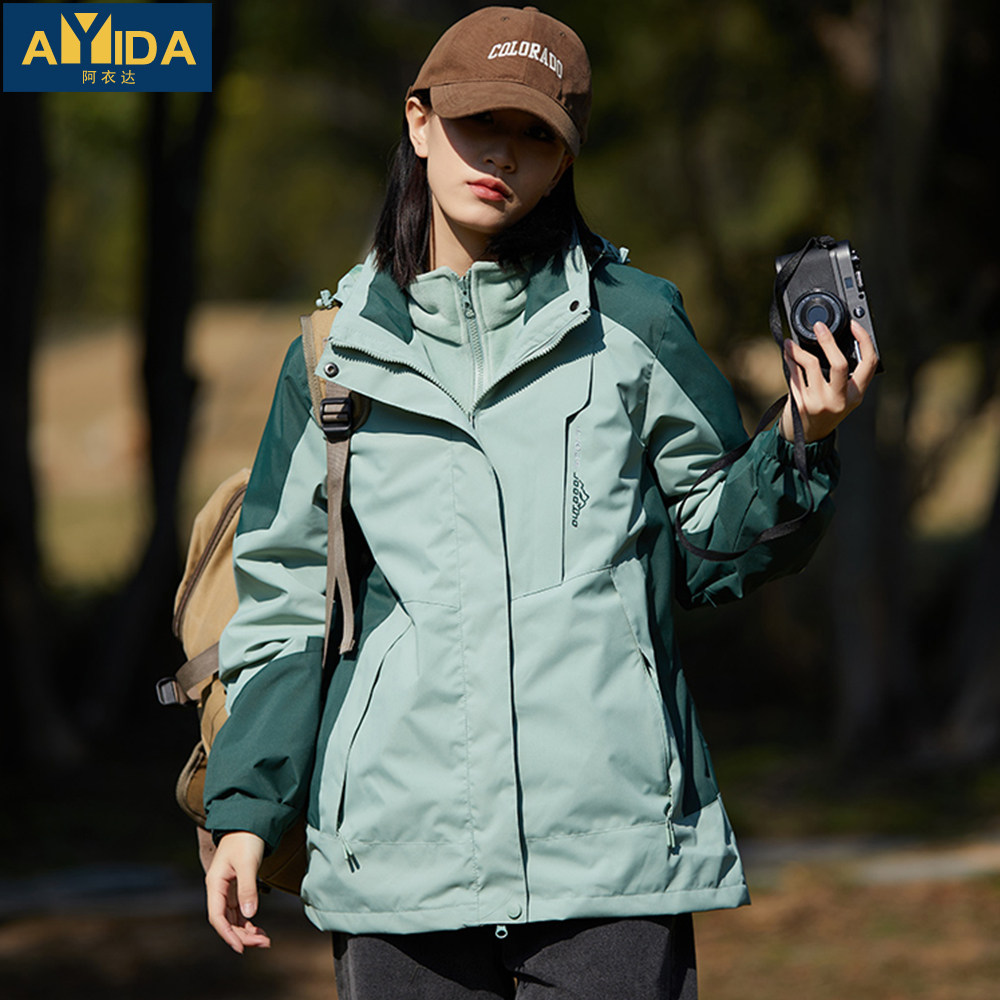 啄木鸟冲锋衣外套男女2025新款秋冬季户外可拆卸防风三合一登山服