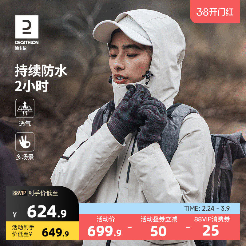 迪卡侬户外冲锋衣三合一女羽绒服秋冬登山保暖防水防风外套ODW