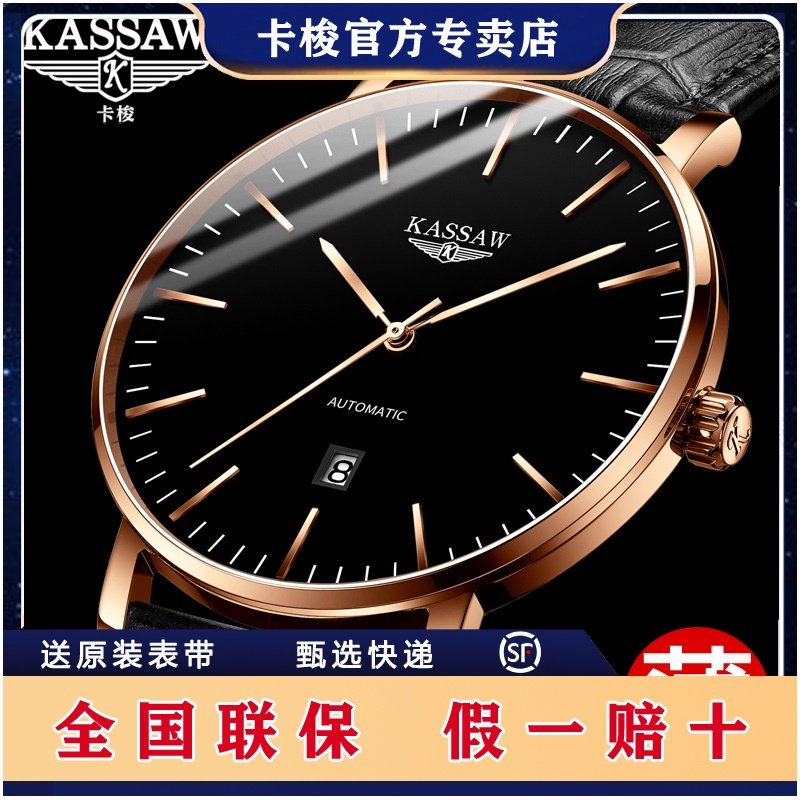 卡罗莱商务男士手表简约真皮带防水全自动机械表休闲新款潮流男表