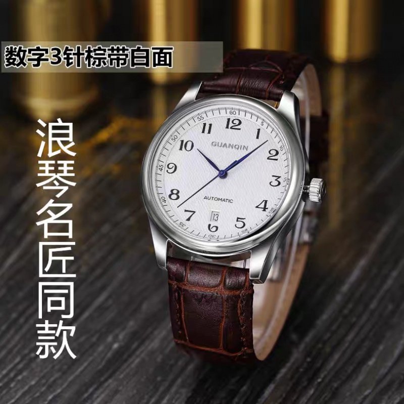 冠琴手表男机械表中国名牌全自动真皮带防水夜光男表潮流男士腕表