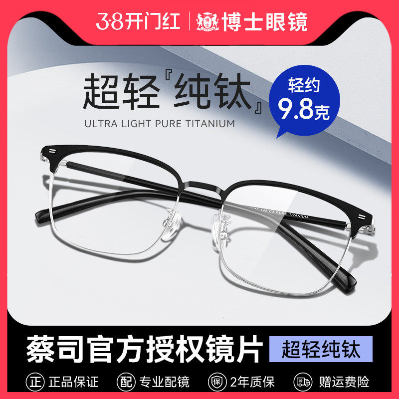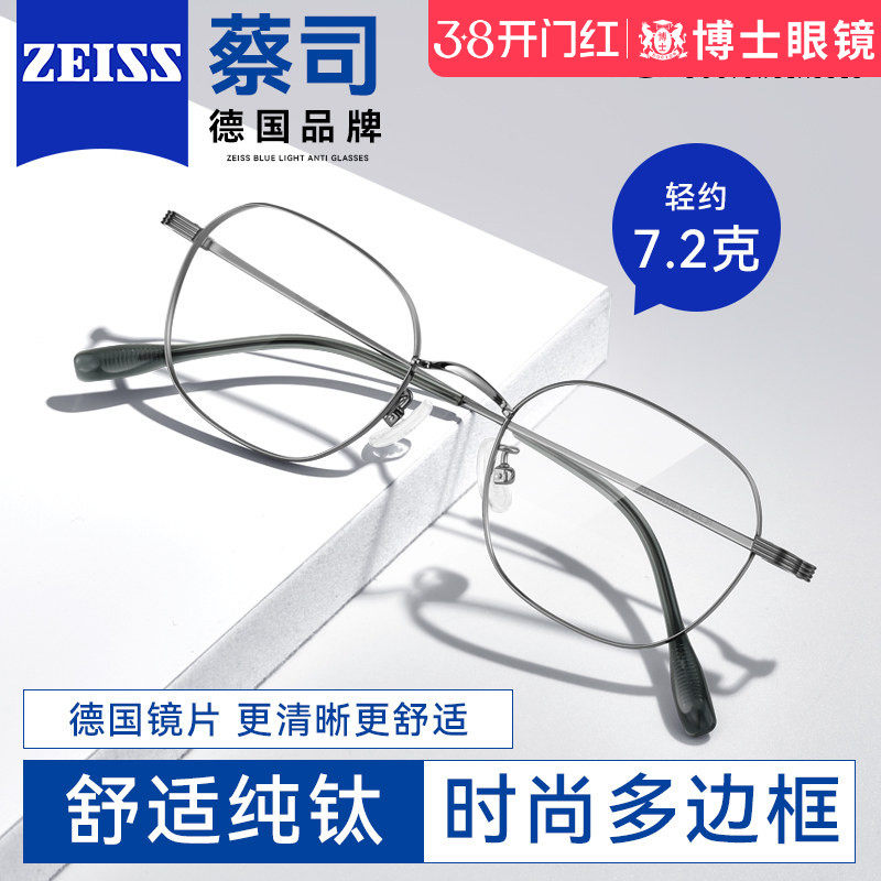德国蔡司眼镜近视男眉框散光纯钛超轻镜片定制度数可配蓝光女镜框