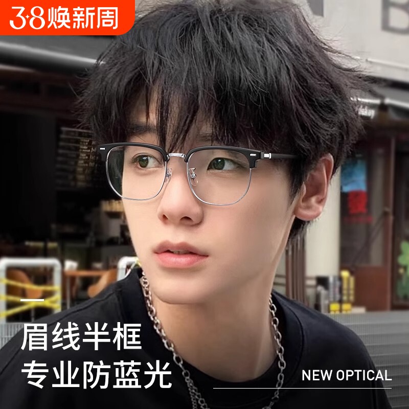 童锦程同款半框眼镜近视男可配度数男款黑框眼睛专业配镜斯文镜框