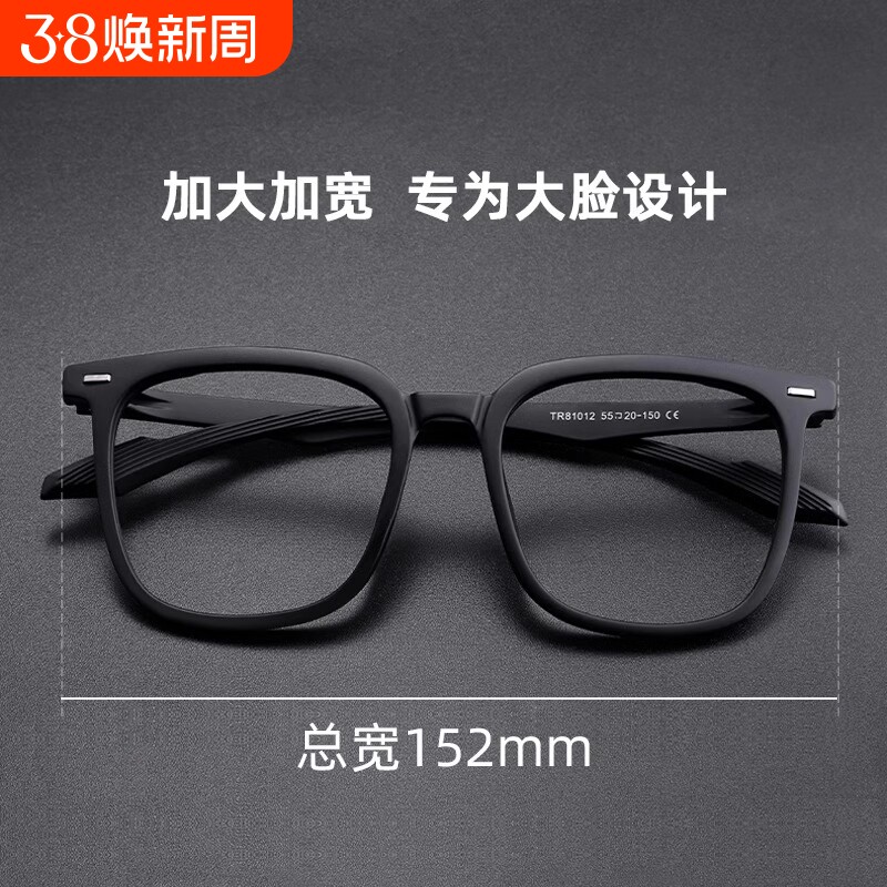 黑框大脸近视眼镜男款可配近视度数加宽大框大码防蓝光磨砂眼镜框