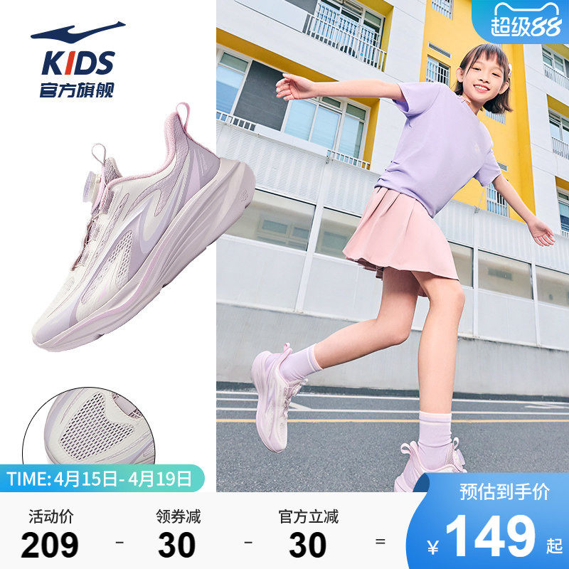 追风4|鸿星尔克童鞋儿童旋钮扣运动鞋女童校园跑步鞋青少年网面鞋